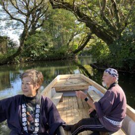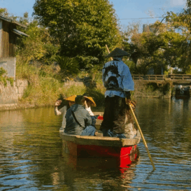 和舟に揺られながら、四季折々の風景と、情緒あふれる町並みを船頭の巧みな竿さばきとユーモアに富んだ語りが、旅を一層豊かに彩ります。