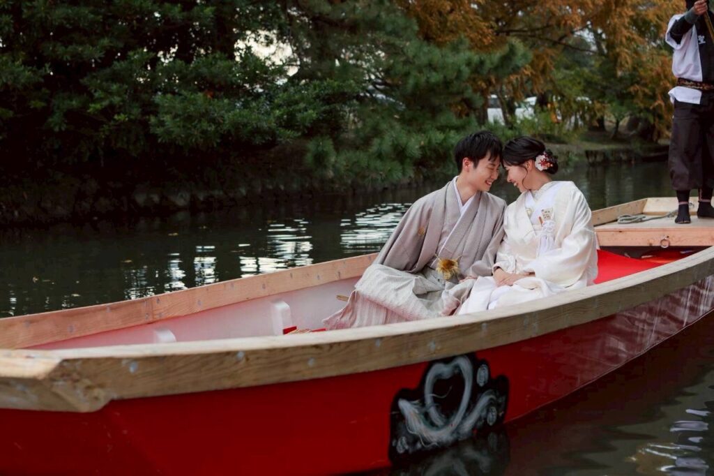柳川の水郷を舞台に、和装の花嫁花婿が舟で進む「婚礼船」。